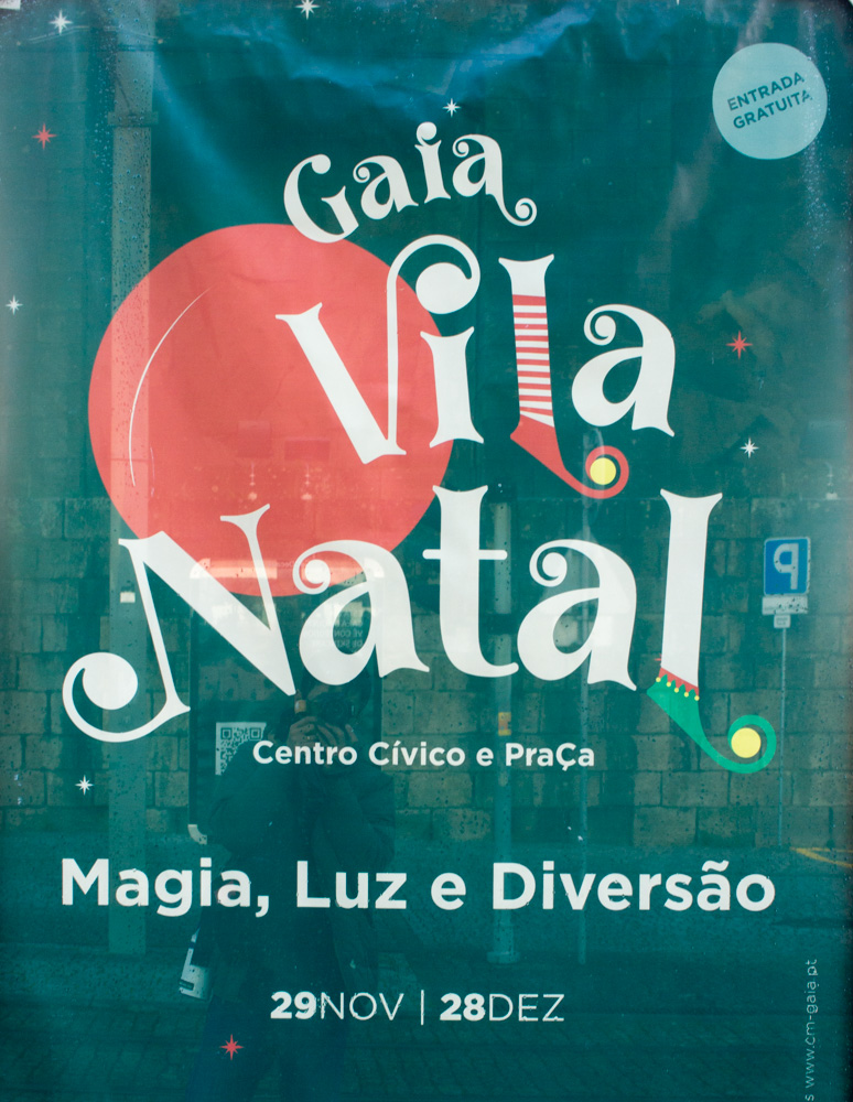Since I can hardly read Portuguese, this poster conveyed nothing to me linguistically. Yet moments like this are precisely when graphic design — which communicates through form — proves its value. So I tried to consider my first impression. The typography is full of curves, giving off a sense of playfulness. There are motifs that resemble musical notes. Perhaps it announces a concert, a play, or some kind of evening event. It turned out to be a poster for a Christmas event — so I was half correct. Still, I never expected to find a Christmas poster still up in February.